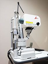 日本初のアプラネーション付、マルチカラーレーザ/ヤグレーザコンビネーションシステム(日本1号機)です。後発白内障や緑内障の光彩切開術などで使用します。 高い光透過性、解像度をもった光学系により視認性を高め、最小限のエネルギーで治療効果を得ることが可能な装置です。